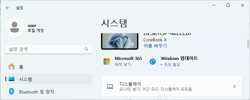배율 100%로 설정 및 해상도를 1600x900 혹은 1440x900 등 16:9등으로 적절한 해상도로 설정합니다.
